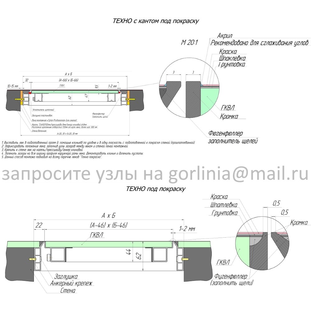 ШХВ дверцы и проема отличаются в зависимости от типа профиля: видимый кант по контуру притвора или без защитной кромки.
