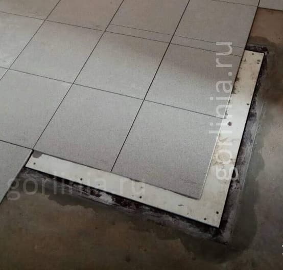 Облегченная коробка из формованного листа 3 мм с наличником для непроходных мест дома. Жесткая створка из профиля 30х20 обшита гипсоволокнистым влагостойким листом под наклейку плитки.