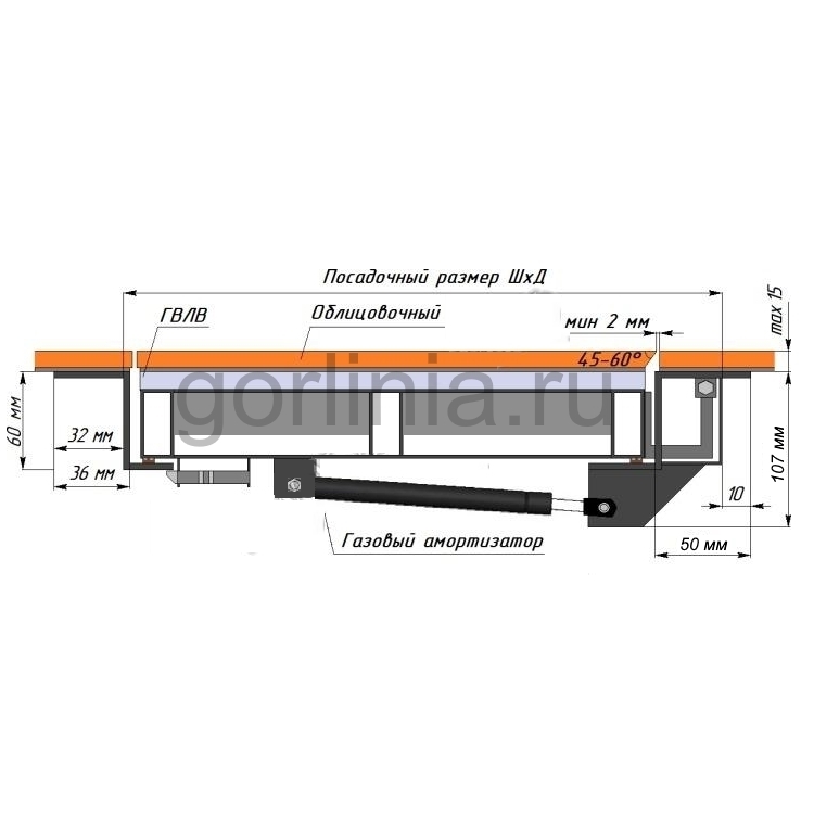 Конструкция смещенного за ось открывания узла шарнира позволяет изготовителю сформировать опорную поверхность по стороне петли, сохранив при этом ширину лаза 700 для удобного спуска по приставной лестнице в подполье.