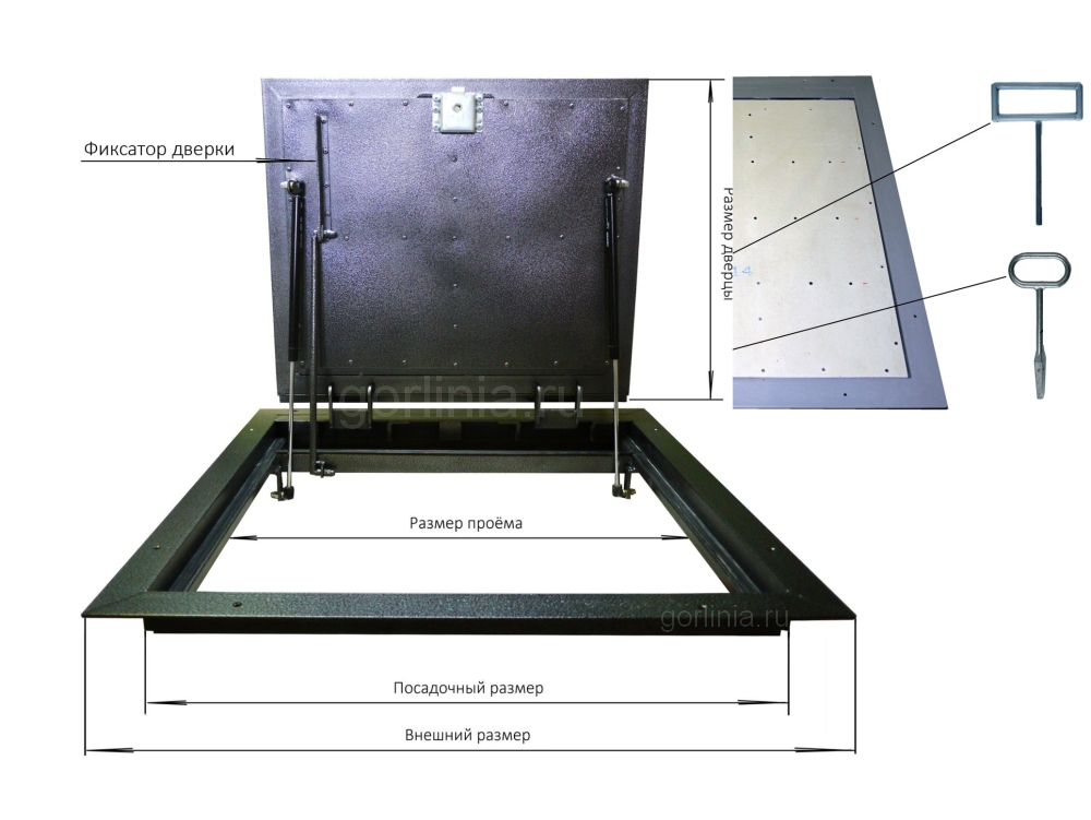 Створка открывается по стороне 1200 мм. Рама сварена из уголка 63х63 мм. Внешний габарит по раме 815х1315 мм. Световой проём составляет 540х1150 мм.